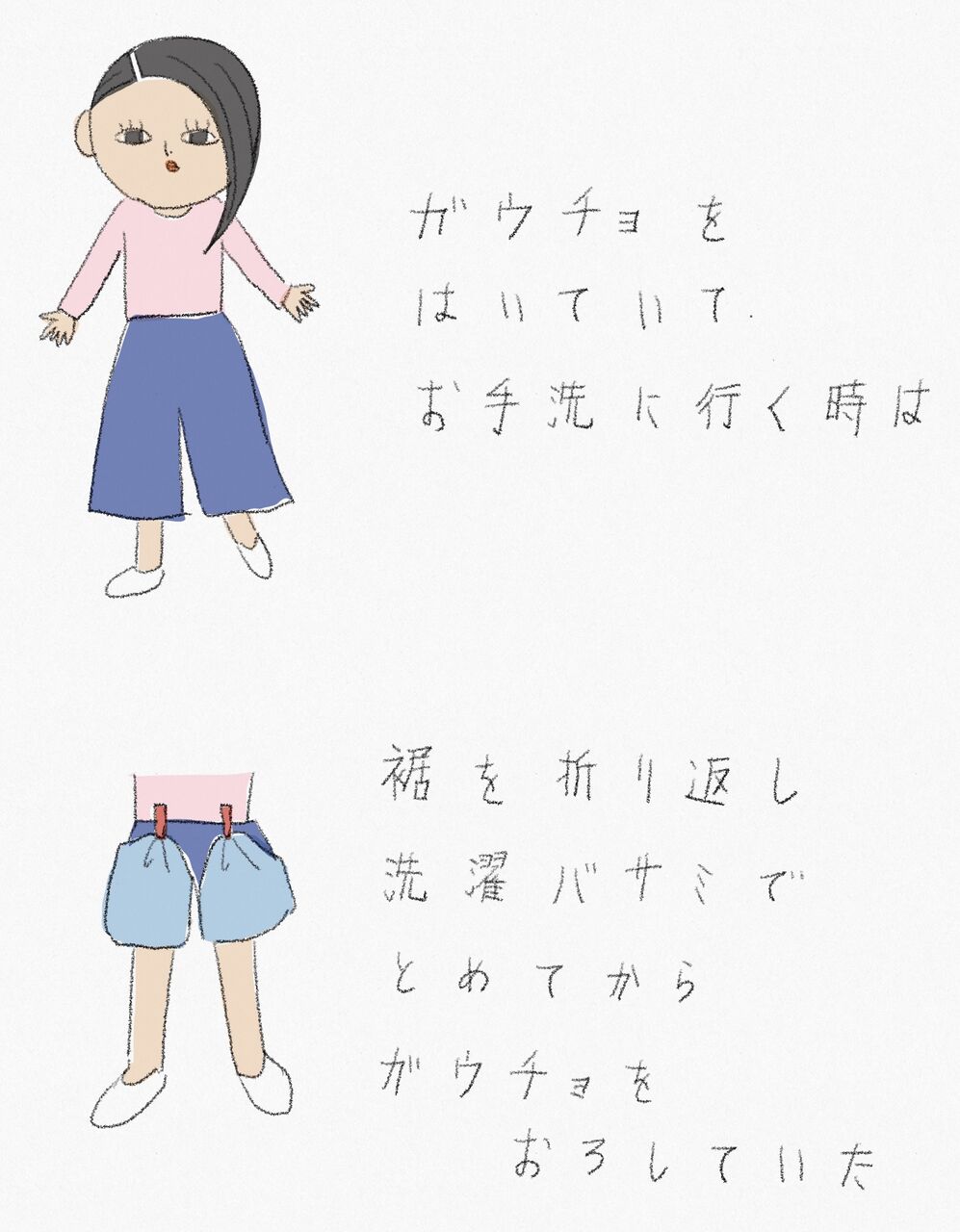 外出先のお手洗いでは、いつも床に裾がつかないかハラハラしていました。