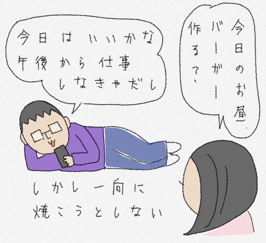 ハンバーガーを作ると言った夫 2024年10月20日 08:00 以前、夫はベランダで肉を焼くと言っていました。↓ 実際、ハンバーガーを作ってくれました。明らかにギクっとしていました。また作るのにまずベランダ掃除をしなくてはならないしもう夫が作ることはない予感がしています。このブログの読者登録はこちらからどうぞ。↓ 「夫」カテゴリの最新記事 タグ :#日記#夫 < 前の記事次の記事 >